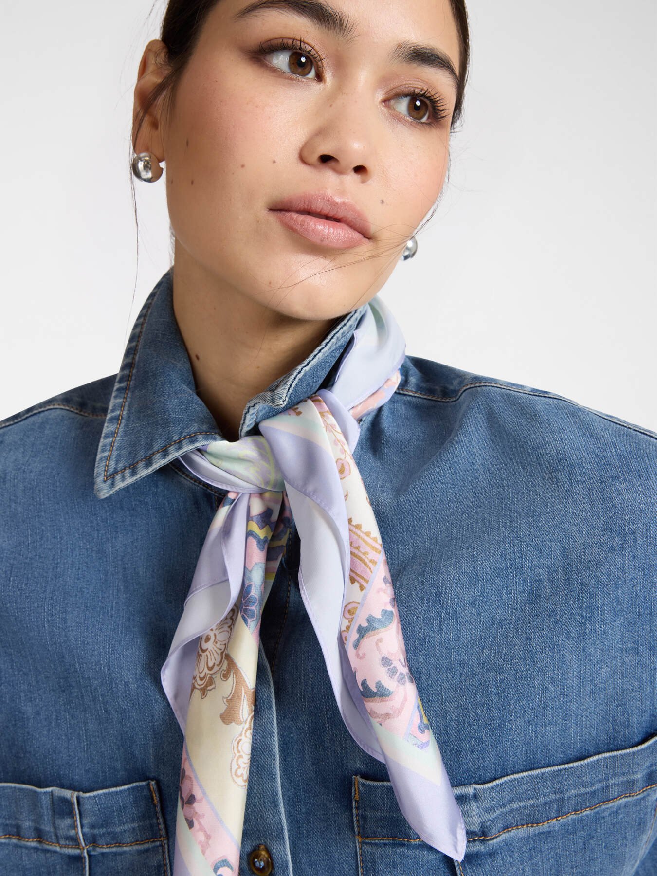 ELENA MIRÒ – Camicia oversize in denim con foulard
