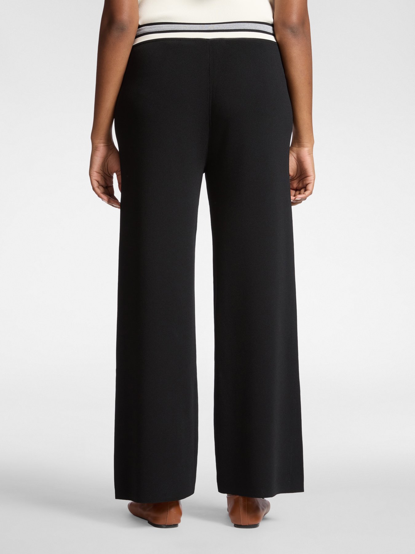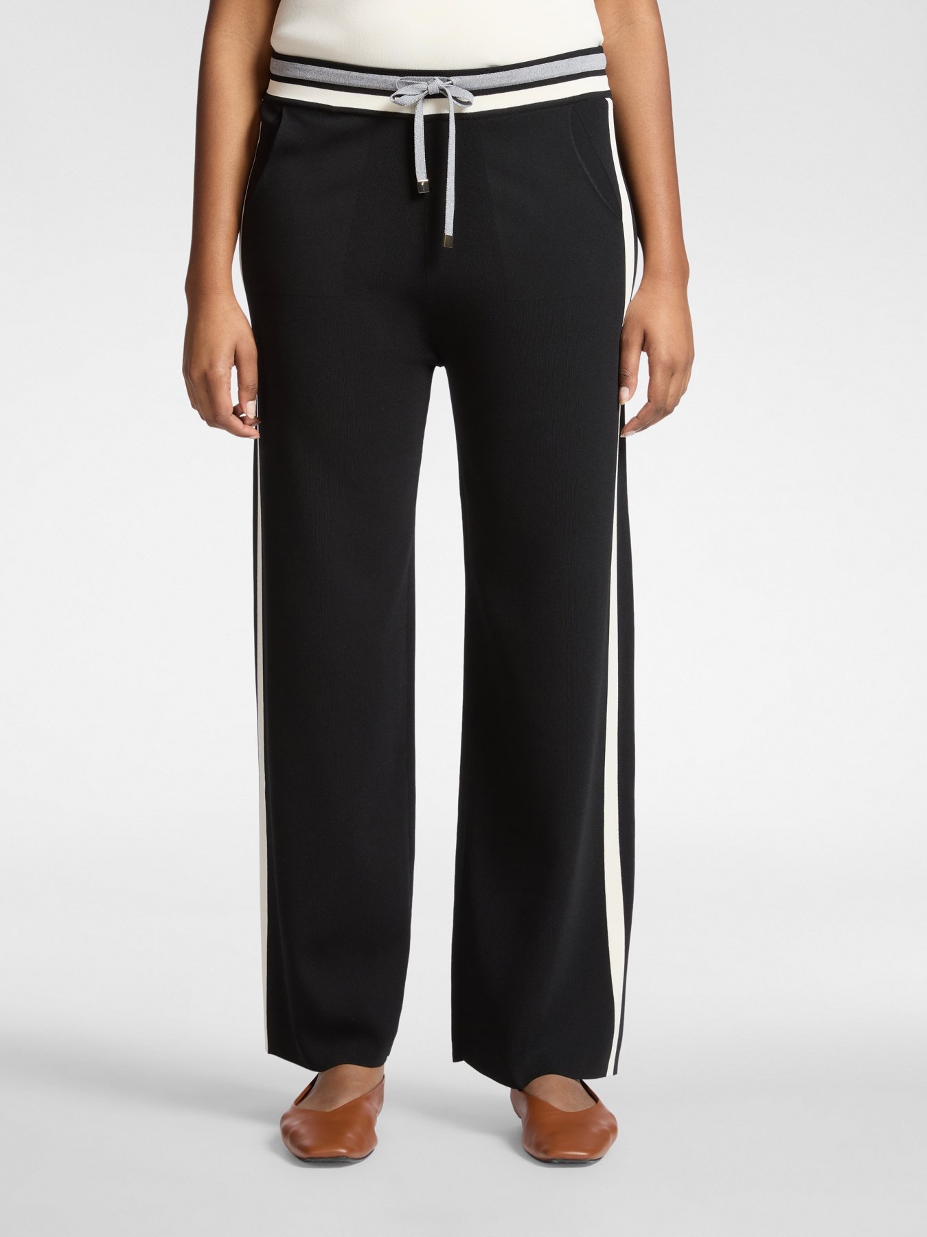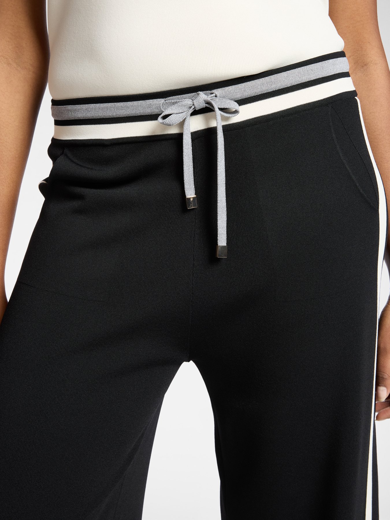 Pantaloni palazzo in misto viscosa dal taglio fluido e vita elasticizzata con laccio regolabile. La linea ampia crea una silhouette contemporanea e confortevole. Si abbinano con camicia per l’ufficio o top morbido per un look sporty chic.