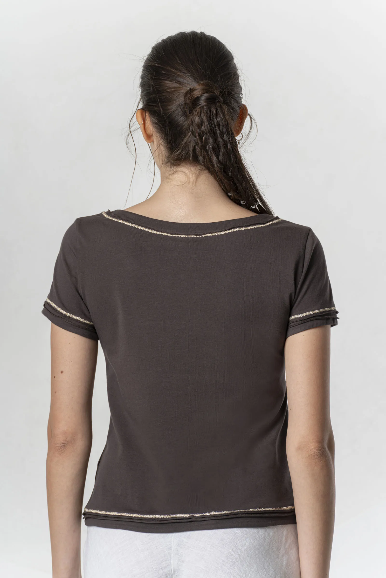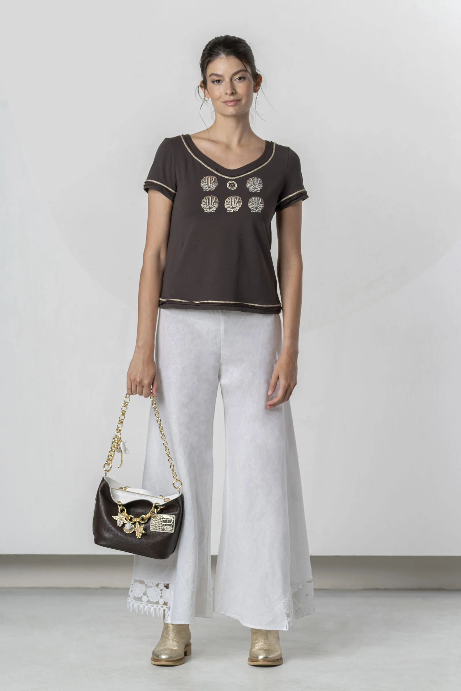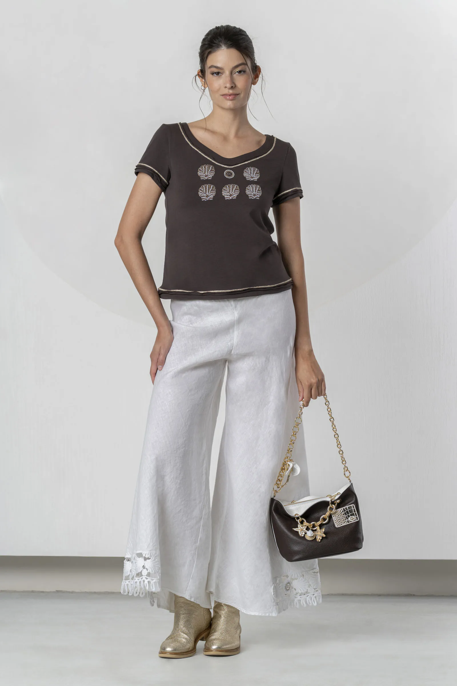 – Applicazione perle bianche e grige raffiguranti conchiglie