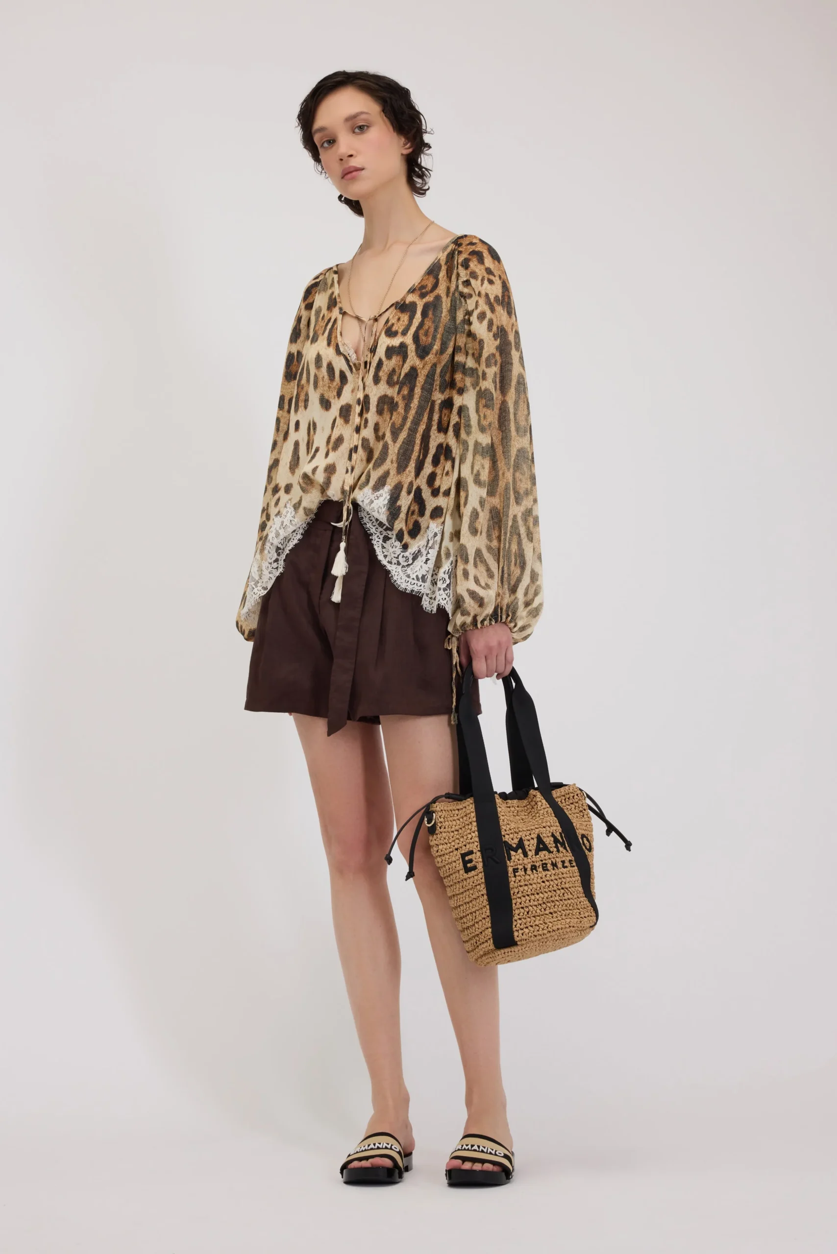 ERMANNO FIRENZE – BLUSA IN GEORGETTE STAMPA ANIMALIER CON PIZZO