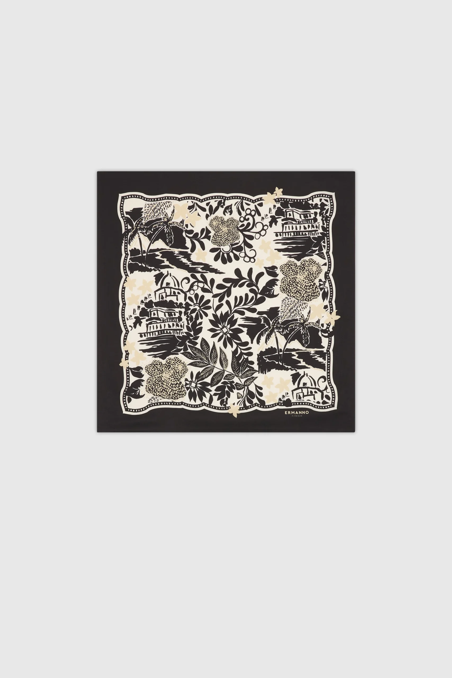 ERMANNO FIRENZE – FOULARD IN RASO DI VISCOSA CON STAMPA TROPICALE
