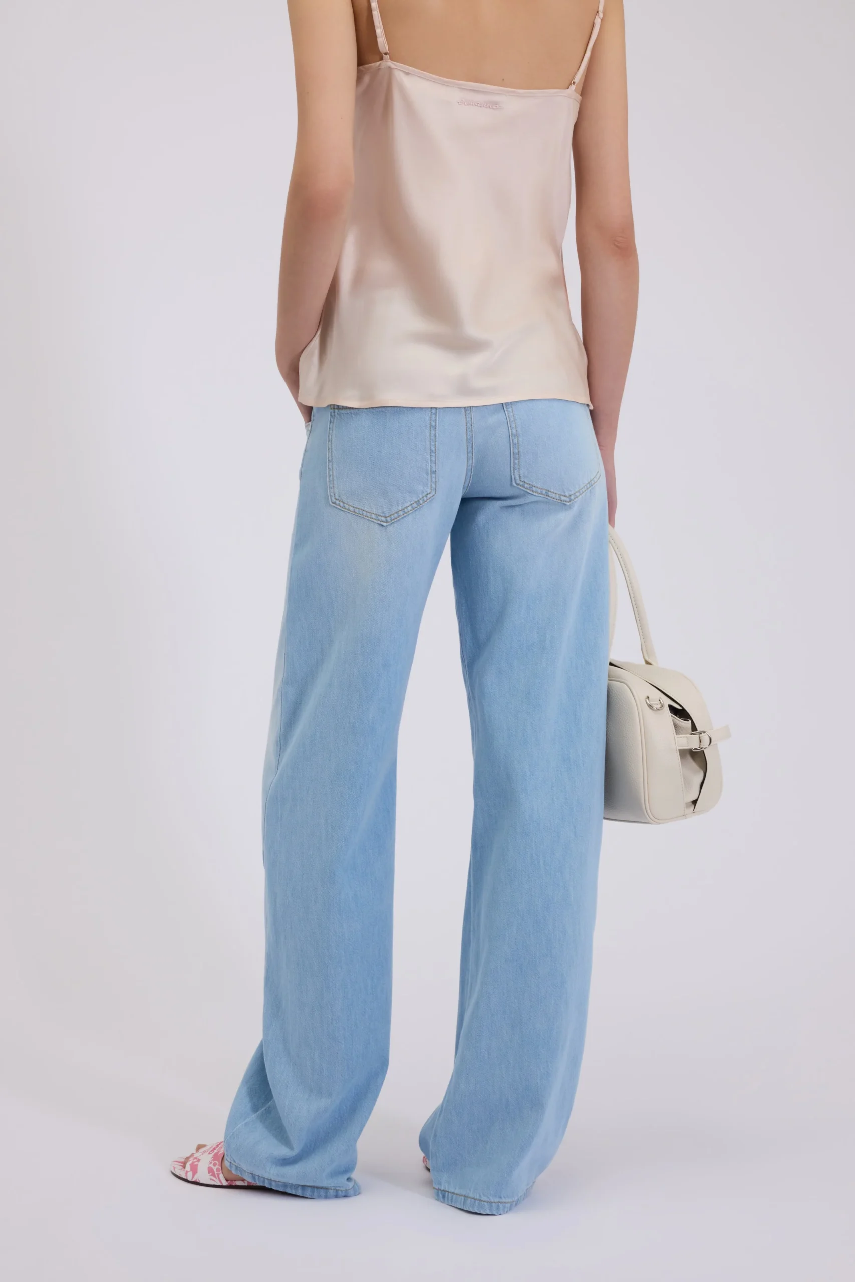 Jeans a 5 tasche barrel fit con vita regolare e gamba leggermente curva, morbido sui fianchi e sulle cosce. In tessuto morbido e leggero di puro cotone stone washed azzurro chiaro. Bottoni e rivetti logati.