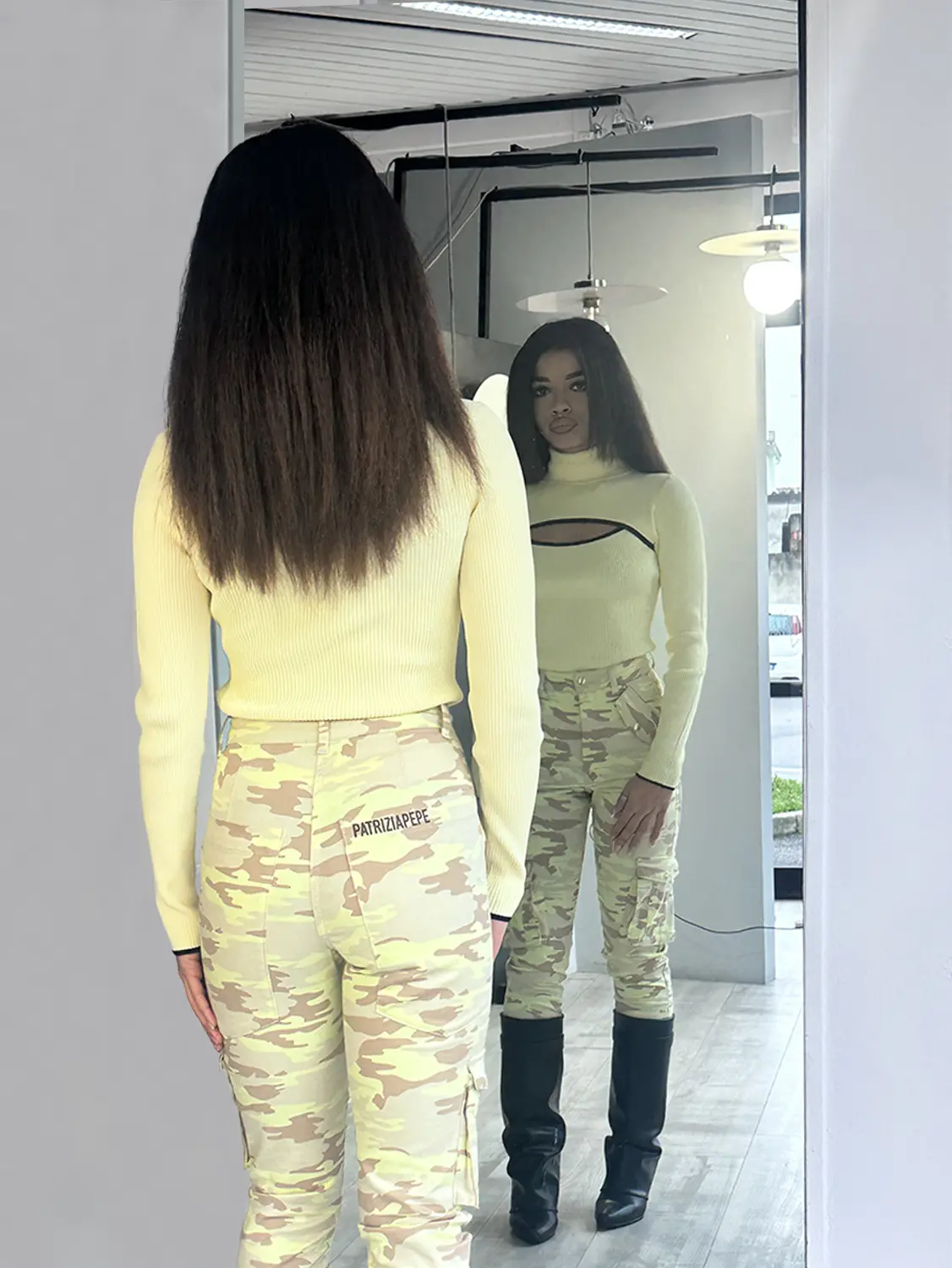Questa maglia in viscosa crepe a costine, si presenta con collo alto, maniche lunghe e silhouette aderente. Il maxi oblò sul davanti è rifinito da bordino a contrasto. Perfetta per qualsiasi occasione dalla più formale a quella più speciale.
