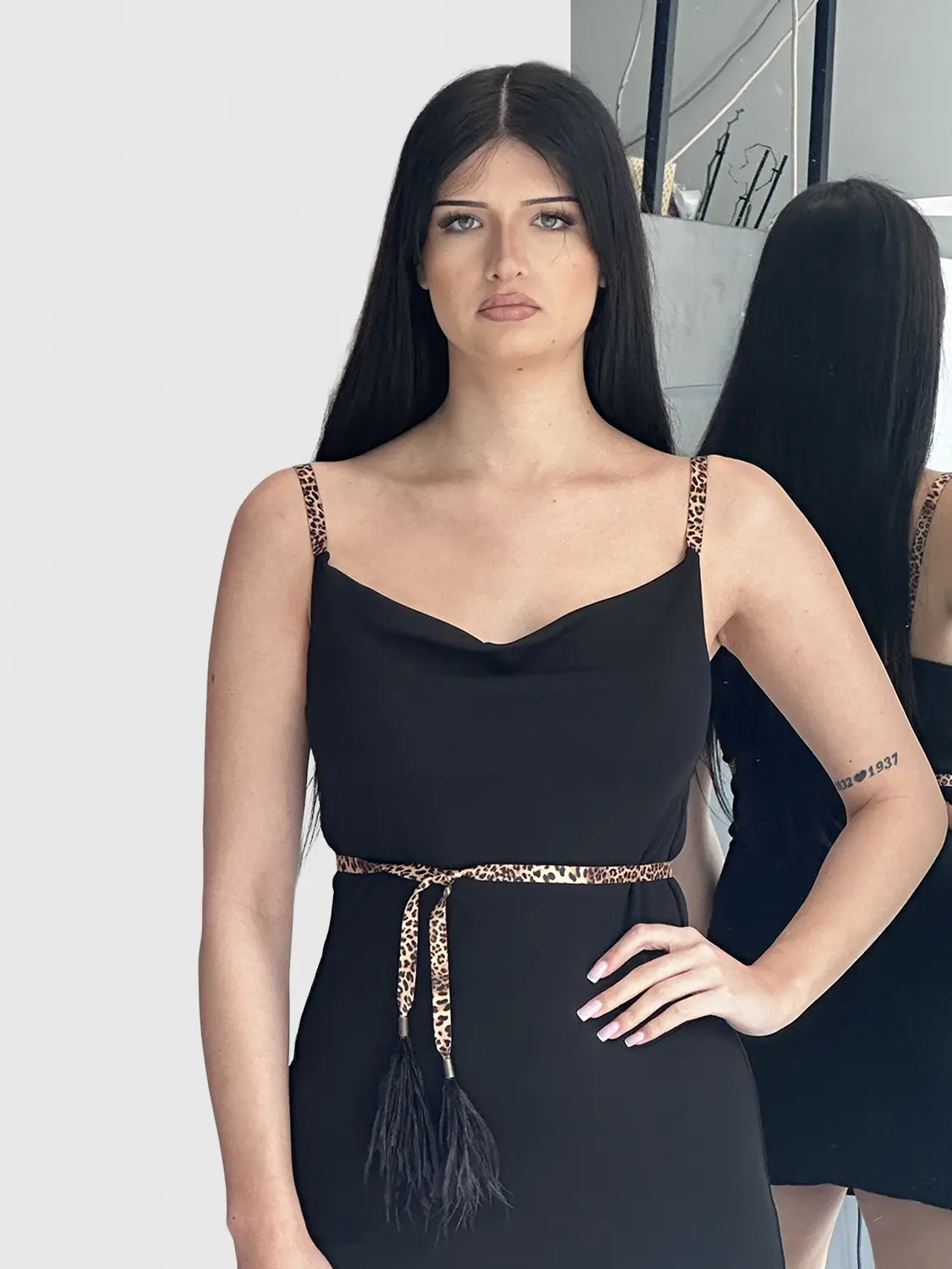 NOELL MAGGINI – Abito in viscosa mano fredda con spalline stampa Leopardata