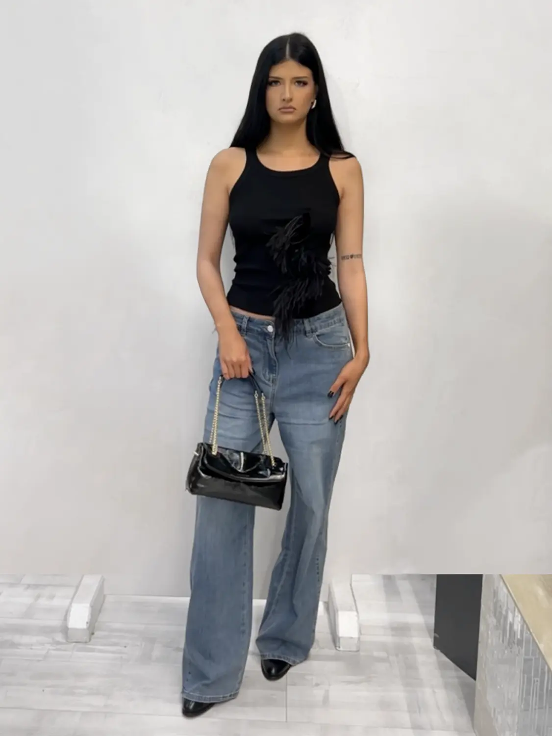 NOELL MAGGINI – Canotta in costina di cotone con piume di struzzo