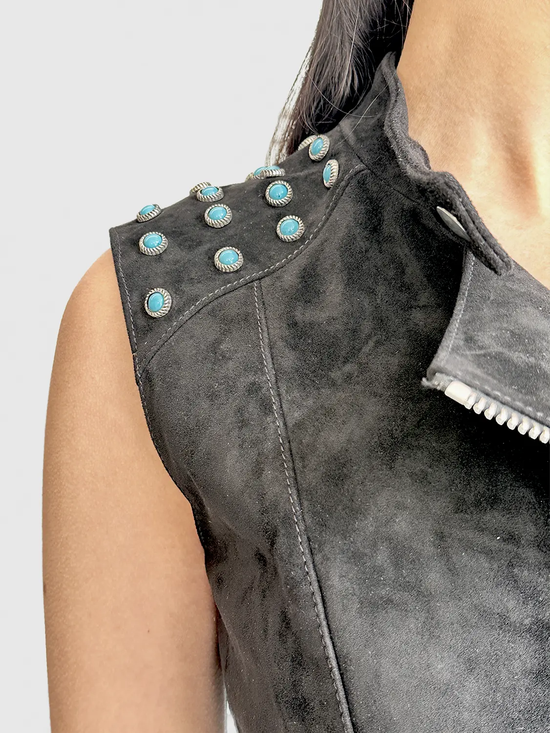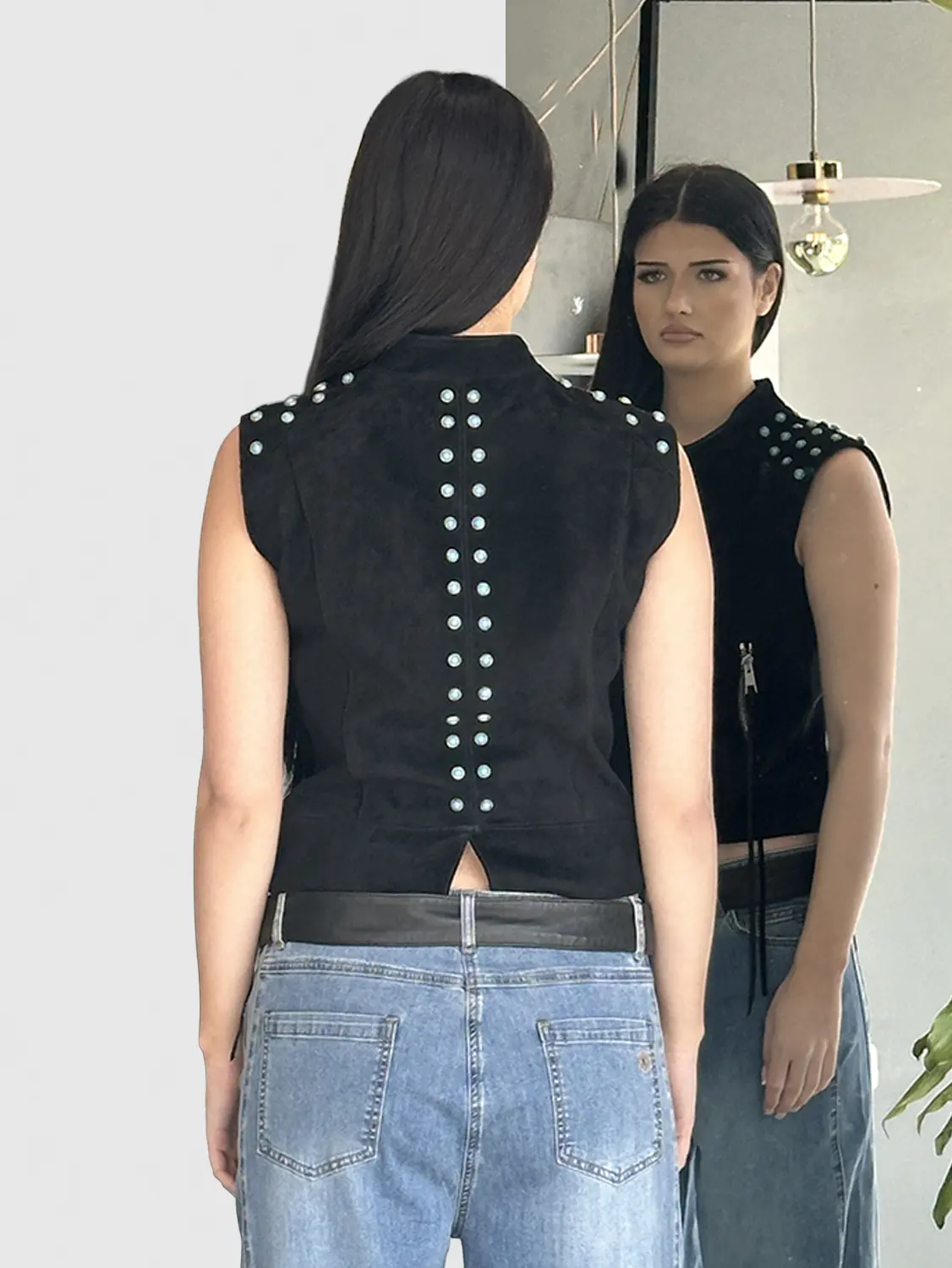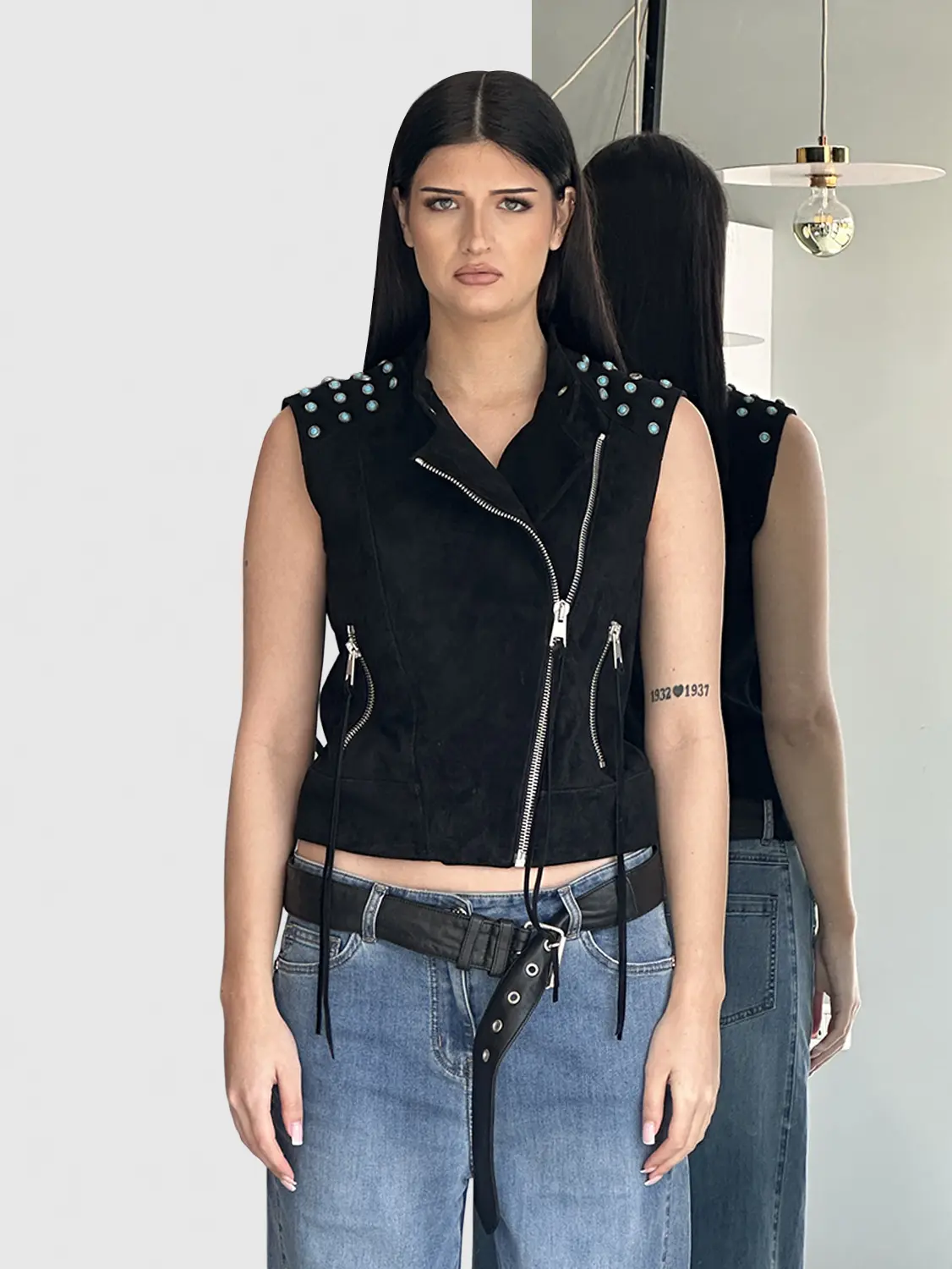 NOELL MAGGINI – Gilet in camoscio con applicazioni