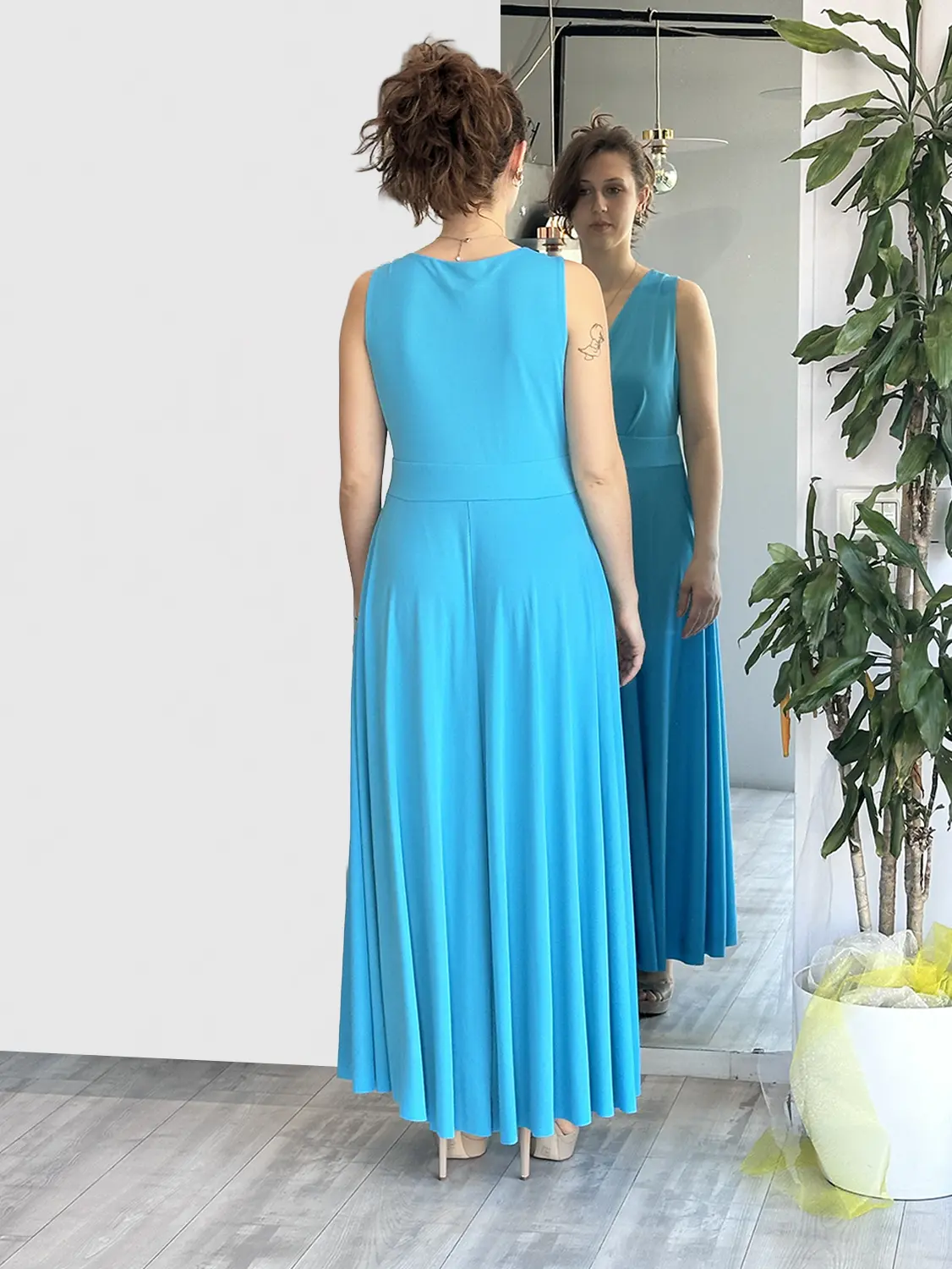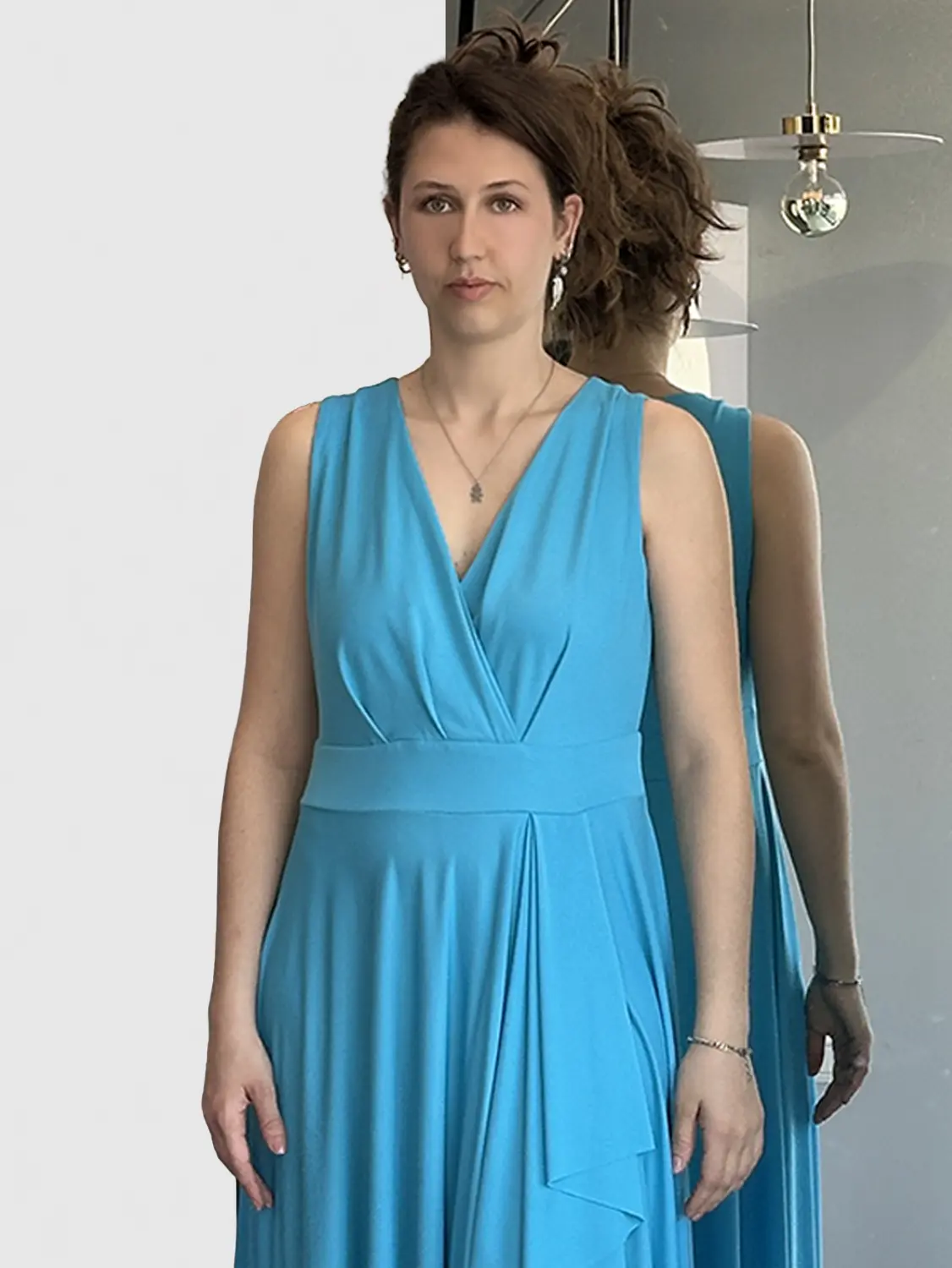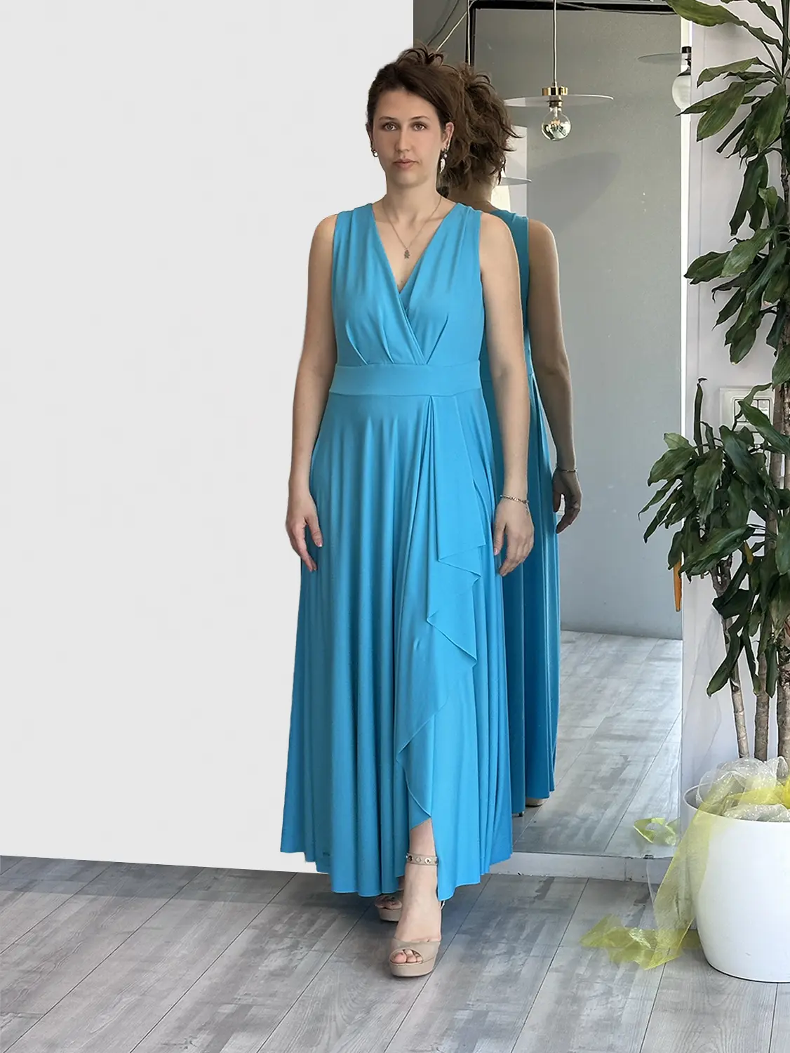 Sophia – Abito drappeggiato turchese