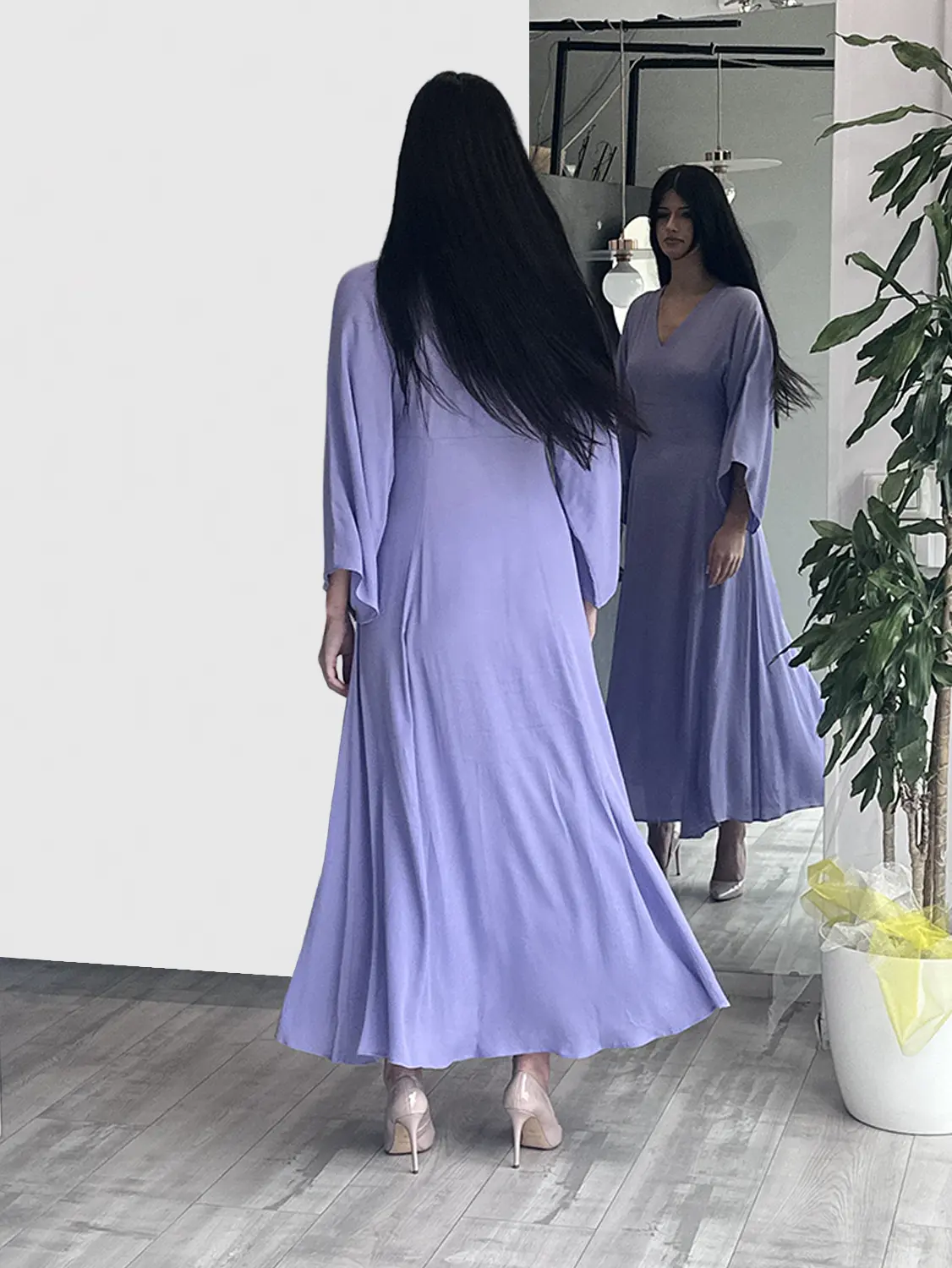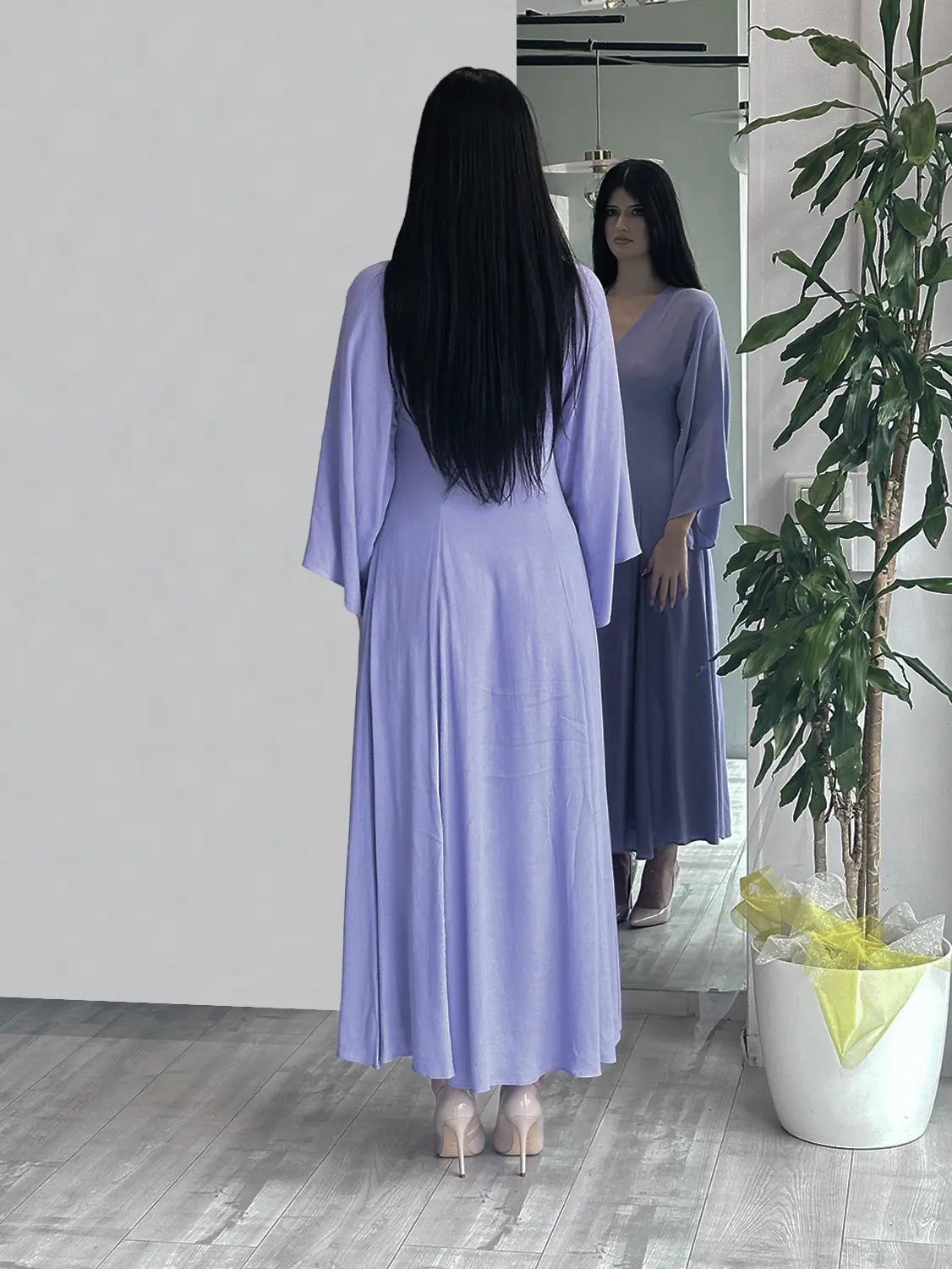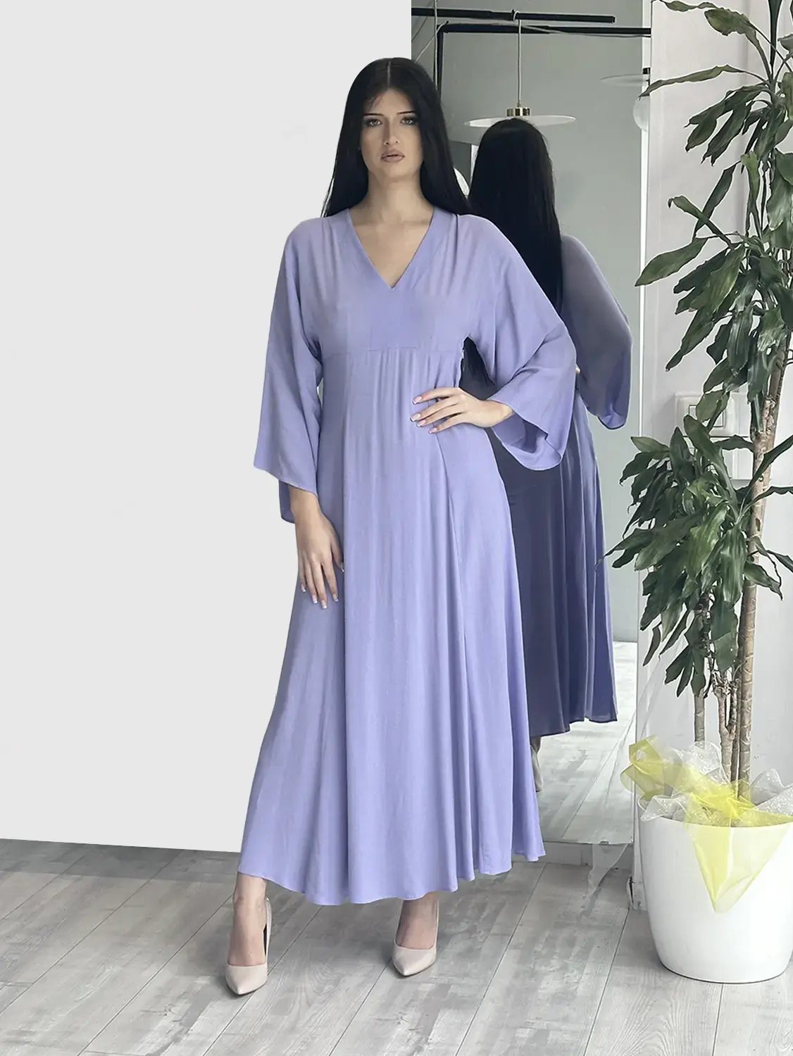 Sottovento – Abito lilla con maniche svasate
