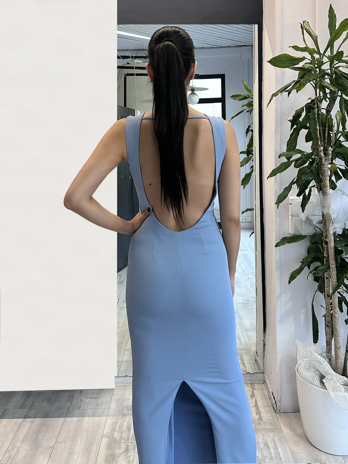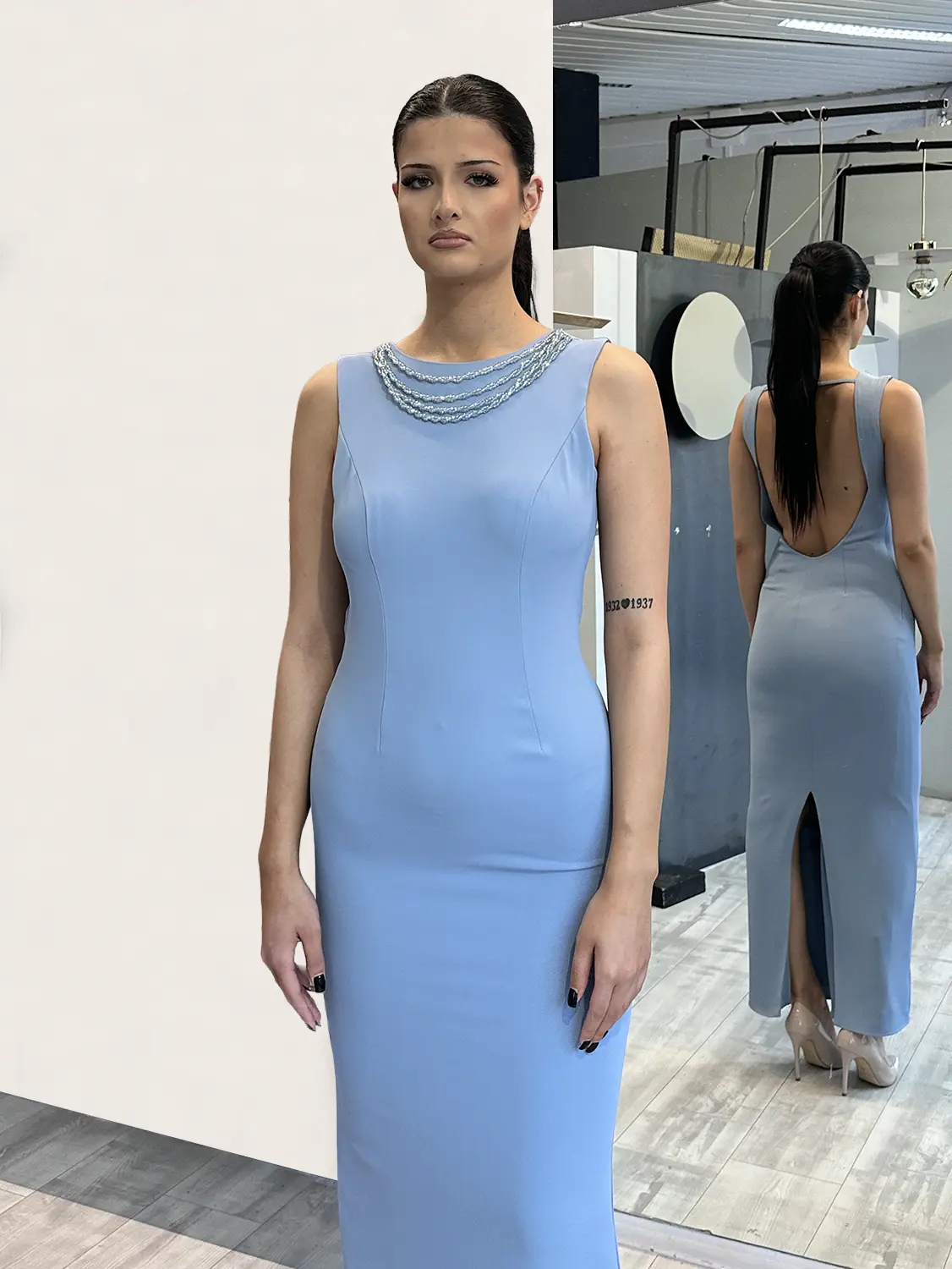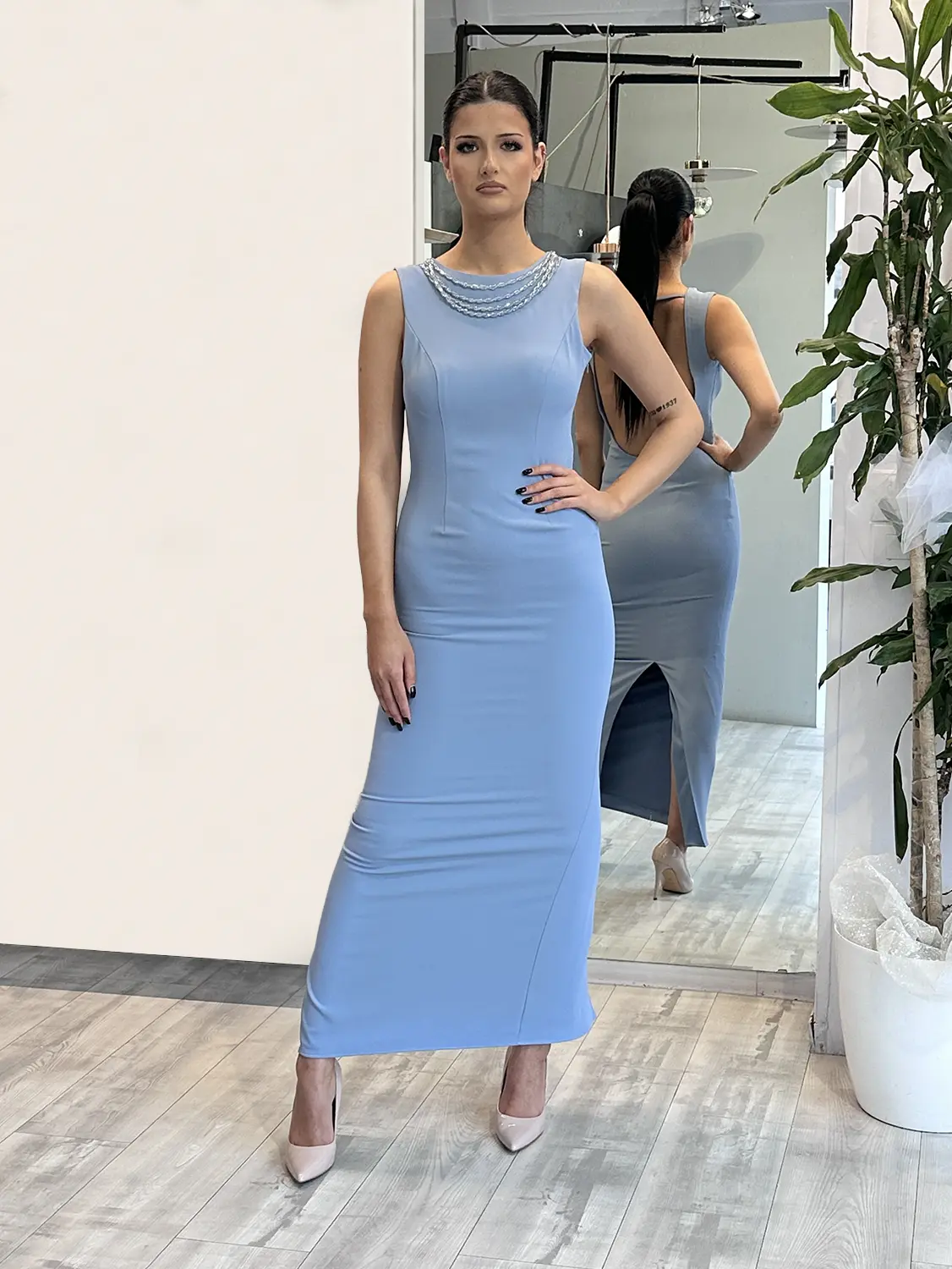Sologioie – Abito tubino lungo con dettaglio gioiello sullo scollo