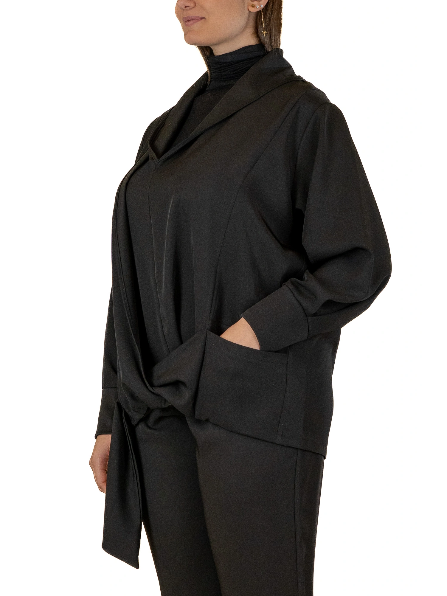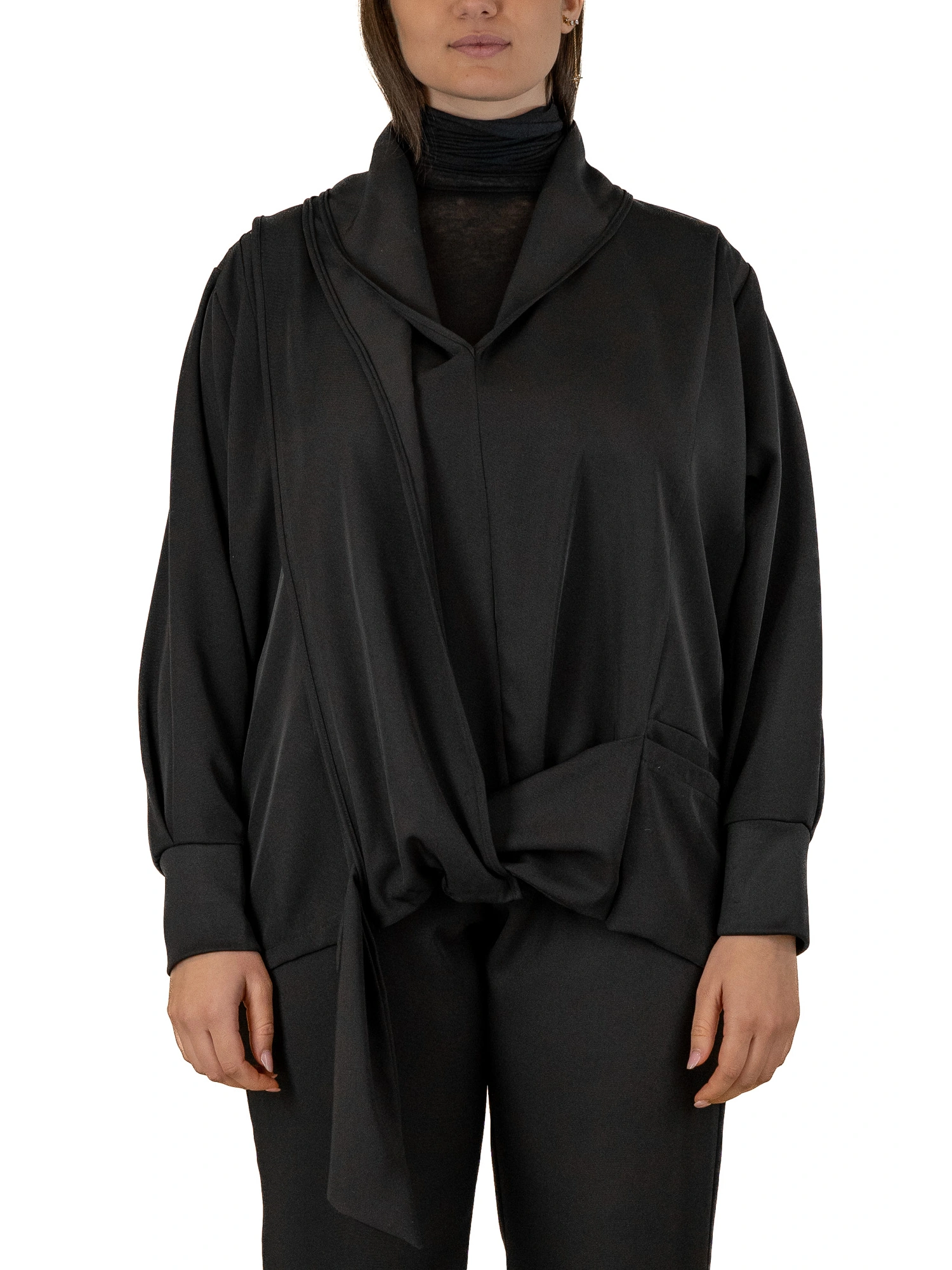 UNA BLUSA DAL DESIGN SOFISTICATO, RESA UNICA DAL NODO FRONTALE CHE SEGNA IL PUNTO VITA CON DISCRETA ELEGANZA. IL COLLO MORBIDO E SCOLLO APERTO AGGIUNGONO MOVIMENTO E FEMMINILITÀ, MENTRE LA VESTIBILITÀ COMODA È PERFETTA PER ACCOMPAGNARE LE FORME CON NATURALEZZA. INDOSSALA CON UN PANTALONE DRITTO O UNA GONNA PER UN LOOK MODERNO E VERSATILE, ADATTO A OGNI MOMENTO DELLA GIORNATA. LA MODELLA È ALTA 170 CM E INDOSSA UNA TAGLIA M.