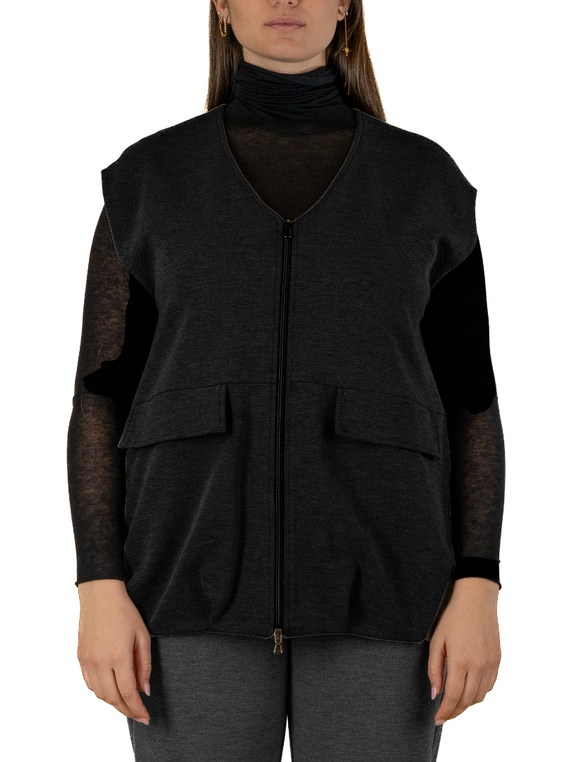 GILET URBAN ZIP UN CAPO VERSATILE DAL FASCINO METROPOLITANO: QUESTO GILET SENZA MANICHE IN MAGLINA COMPATTA È LA RISPOSTA PERFETTA PER CHI CERCA UN LOOK MODERNO E MULTIFUNZIONALE. LA ZIP FRONTALE DÀ CARATTERE E PRATICITÀ, MENTRE LE MAXI TASCHE CON PATTA AGGIUNGONO UN TOCCO UTILITY DI TENDENZA. IL TAGLIO COMODO E LIEVE SUL FIANCO SI ADATTA A OGNI FISICITÀ, VALORIZZANDO LA FIGURA SENZA COSTRINGERE. INDOSSALO SOPRA A MAGLIE, CAMICIE O DOLCEVITA PER UN LOOK STRATIFICATO DAL SAPORE URBANO, IDEALE PER AFFRONTARE LA GIORNATA CON STILE E SICUREZZA. LA MODELLA È ALTA 170 CM E INDOSSA UNA TAGLIA M.