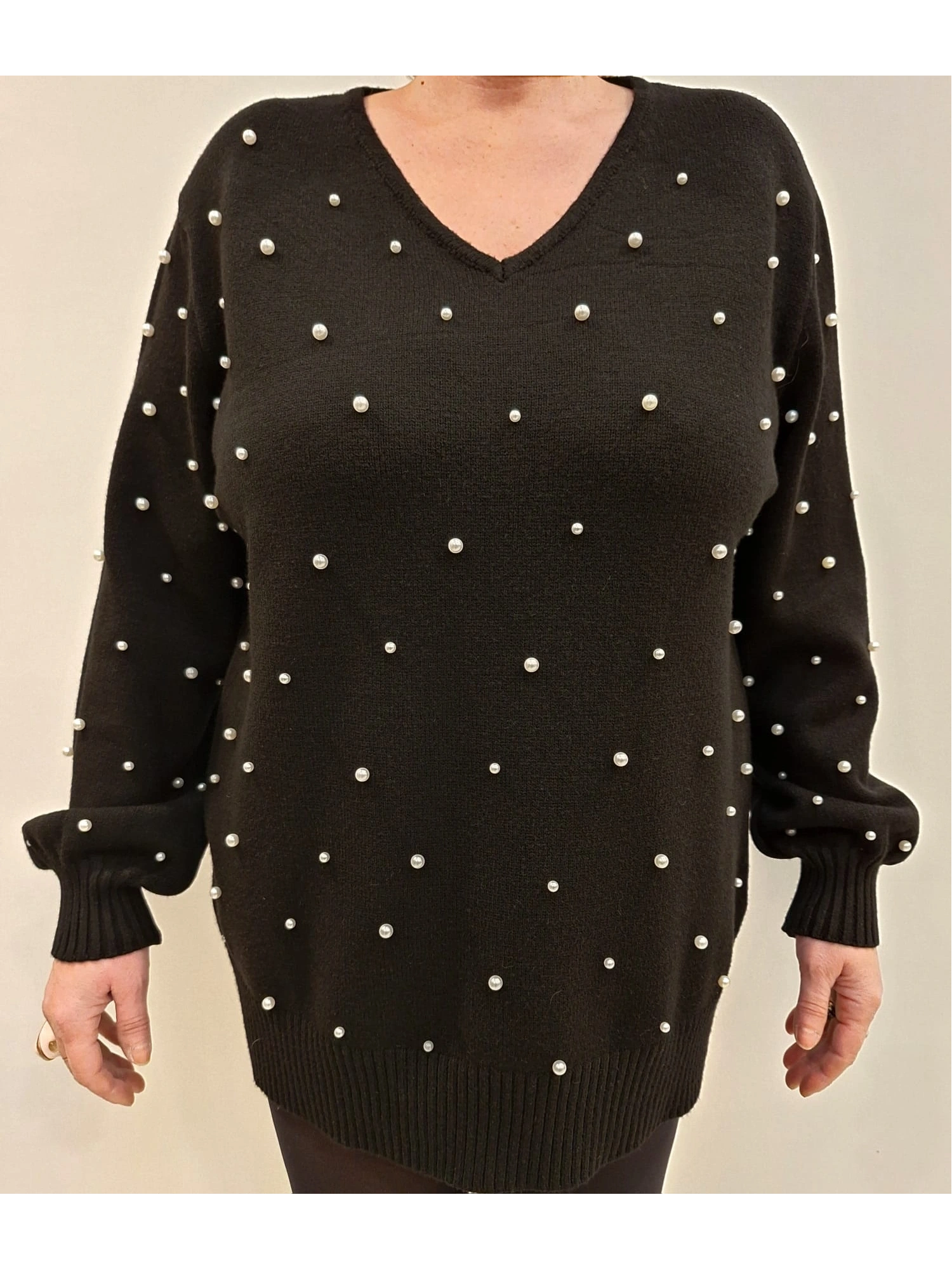 MAXI PULL DALL’ANIMA ROMANTICA E GLAM, ARRICCHITO DA PERLE APPLICATE CHE DONANO UN TOCCO LUMINOSO E FEMMINILE. LO SCOLLO A V SLANCIA LA FIGURA MENTRE LA VESTIBILITÀ MORBIDA AVVOLGE CON COMFORT E STILE. PERFETTO PER CREARE LOOK CHIC ANCHE NEL QUOTIDIANO, DA INDOSSARE CON LEGGINGS, PANTALONI O GONNE A CONTRASTO. LA MODELLA È ALTA 170 CM E INDOSSA UNA TAGLIA M.