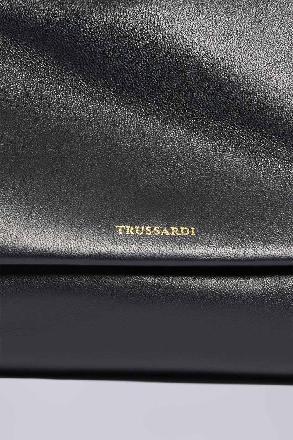 Borsa a tracolla Orbita media in nappa, con design versatile e innovativo, dimensioni 33 x 19 x 11 cm, accessorio logato in galvanica oro, indossabile a tracolla o spalla.