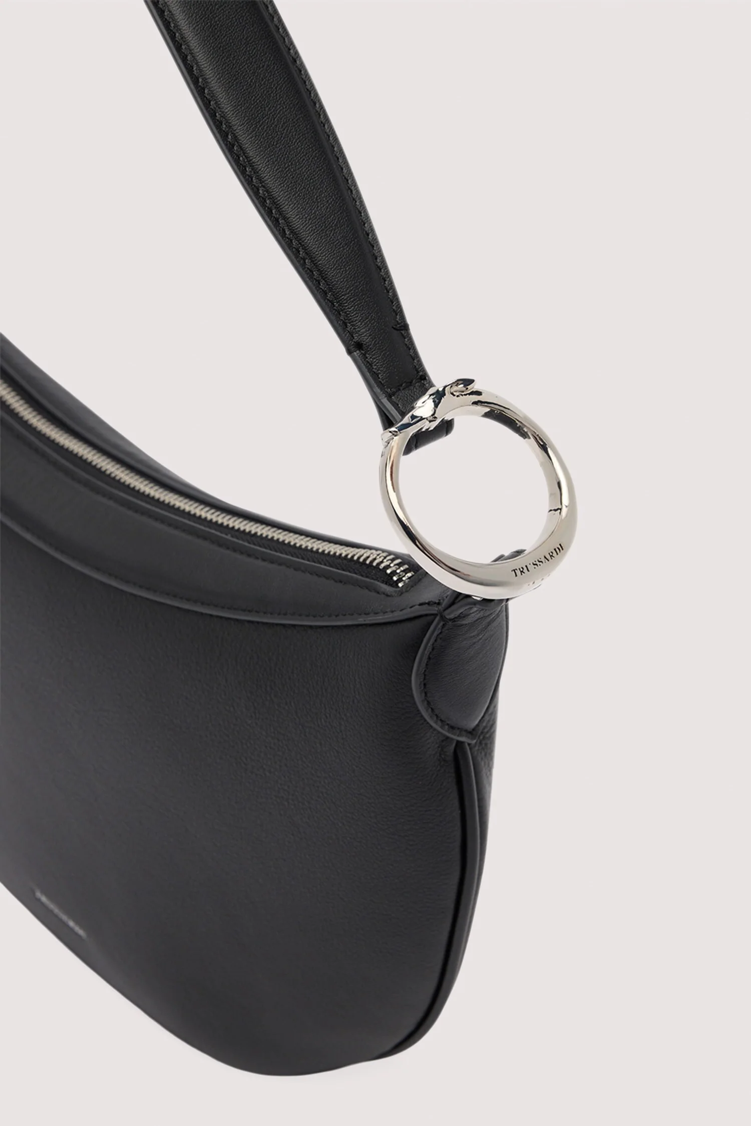 Borsa hobo small in pelle martellata con tracolla a spalla e levriero Trussardi circolare decorativo, fodera interna.