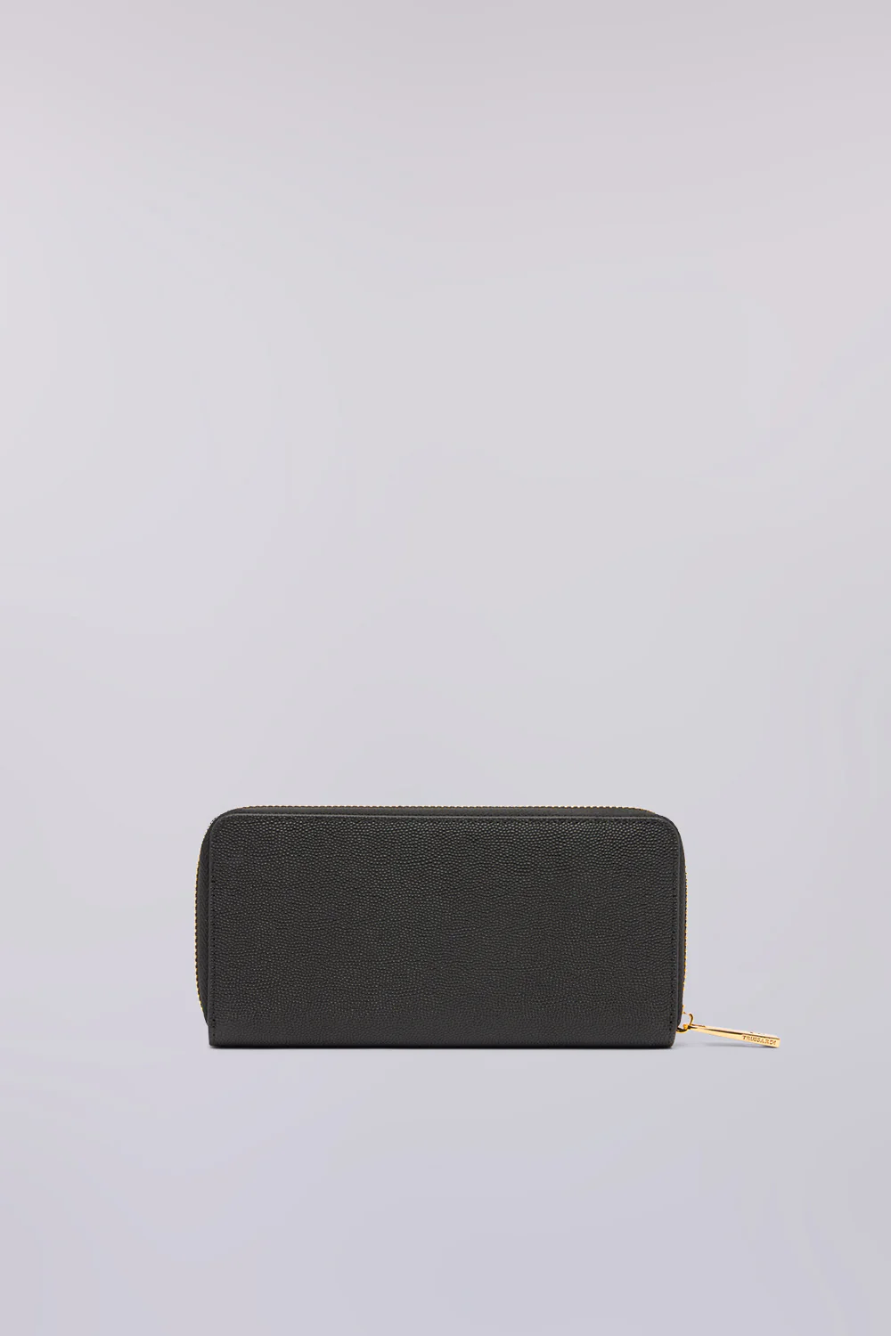 Portafoglio Cameo in pelle grana riso con chiusura zip around, levriero Trussardi in metallo e interno multitasche.